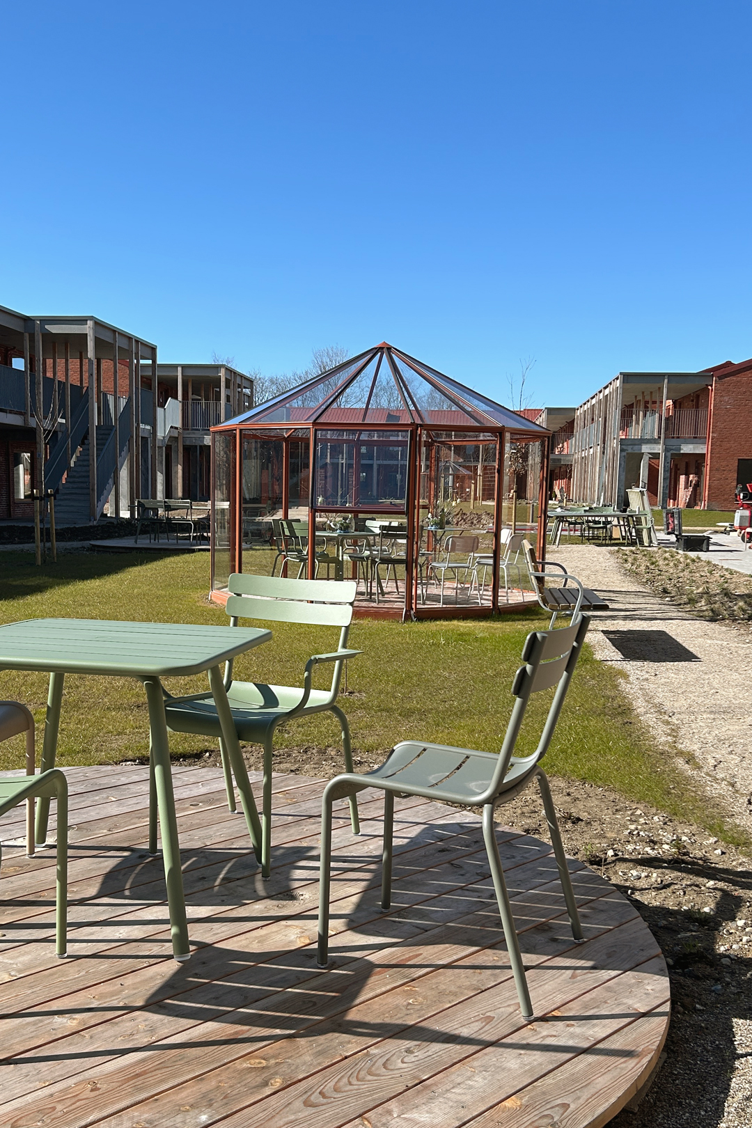 Harlev ligger som en naturskønt placeret forstad vest for Aarhus, hvor det sydvendte terræn leder ned til skov og engsø. Her udvikler AlmenBo bo i samarbejde med TRANSFORM arkitekter, Artelia rådgivende ingeniører og VEGA landskab et helt nyt senioregnet boligområde. Boligerne er fra start indtænkt med aktiviteter og funktionerer, rettet mod et mere modent segment. Området er tilrettelagt omkring et fælles gårdrum med fælleshus, og hvor enggræsser og stauder indrammer beboernes aktiviteter med drivhuse, petanque, træ‐terrasser og klippehave. Naturen prioriteres som den ydre ramme, der skaber den samlede stemning for hele området.