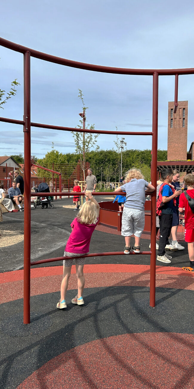 Udover at kunne benyttes som træningsfacilitet, er det også muligt for skolen og lokalområdets børn at leget og svinge sig i tårnets forskellige funktioner.